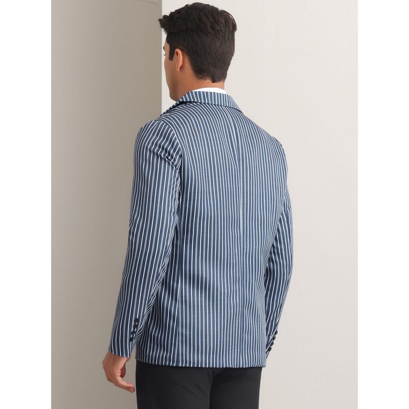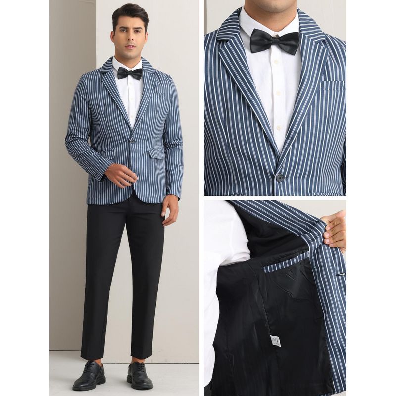 INSPIRE CHIC Men's One Button Slim Fit Contrasting Color Striped Blazers Navy Blue Small