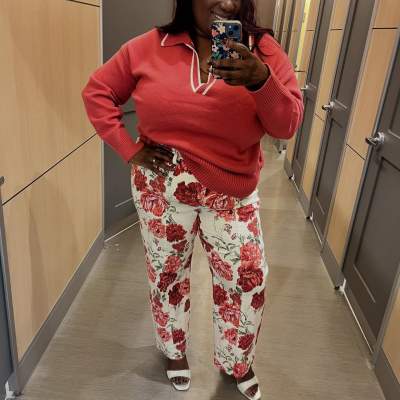 Women's Long Sleeve Knit Johnny Collar Sweater - Ava & Viv™ Coral Red 2X