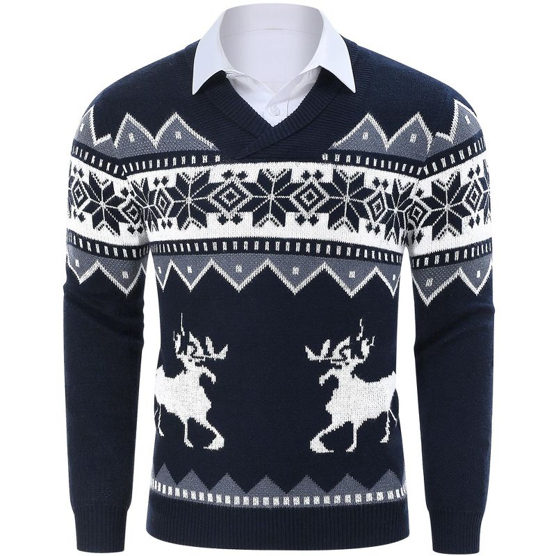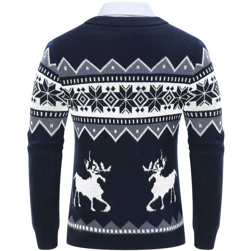 Coolmee Men's Christmas Sweater Ugly Knitted Xmas Sweaters Casual Snowflake Deer Pullover Knitwear Navy Blue XL