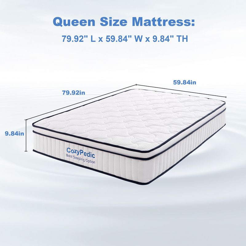 GDFStudio Subaru Firm Memory Foam Mattress with Pocket Springs, White, 10" Queen Size