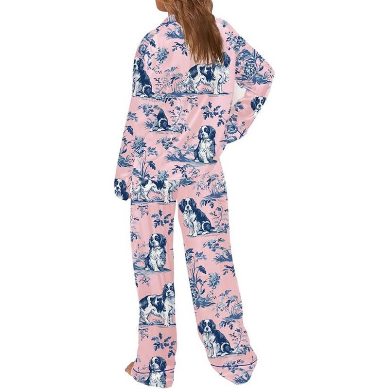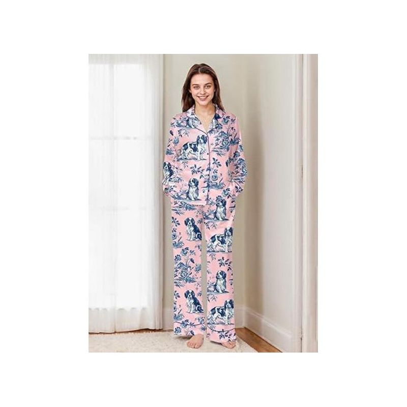 SHESHOW Funny Pjs Sets Women Button Down 2 Piece Pjs Long Sleepwear Animal Print Pajamas Set for Women Cute Dog Pink L