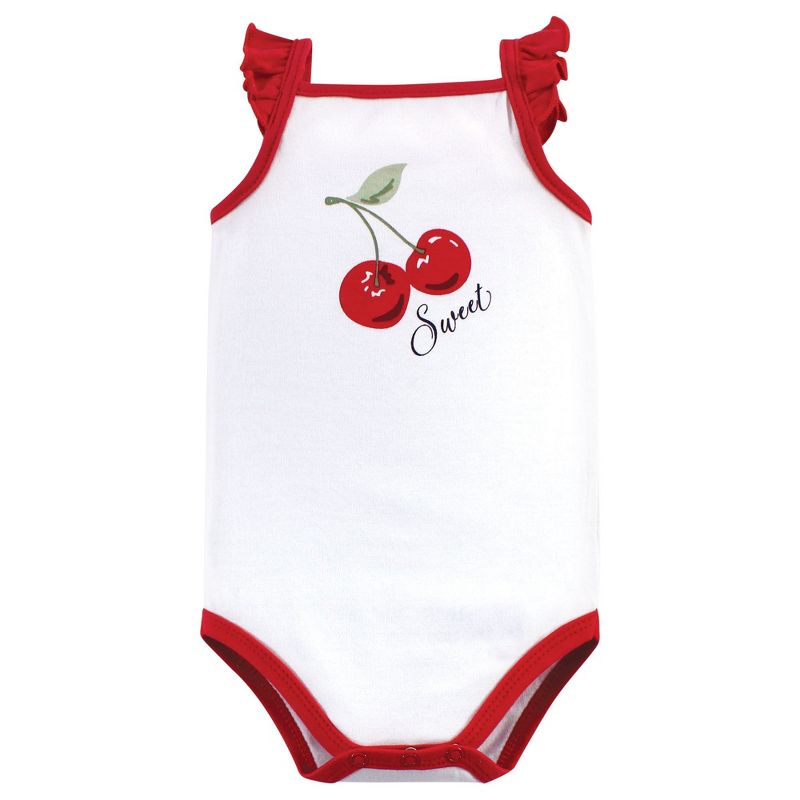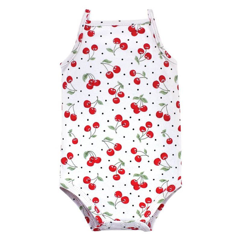 Hudson Baby Infant Girl Cotton Sleeveless Bodysuits 5pk, Cherries, 3-6 Months