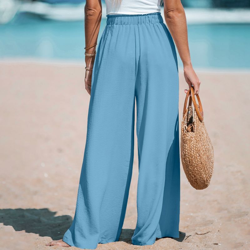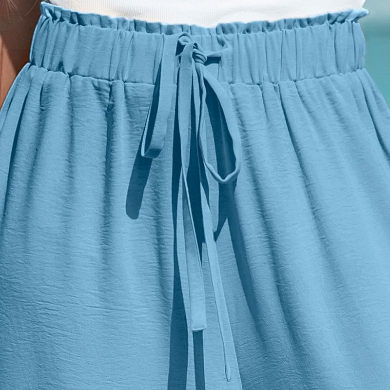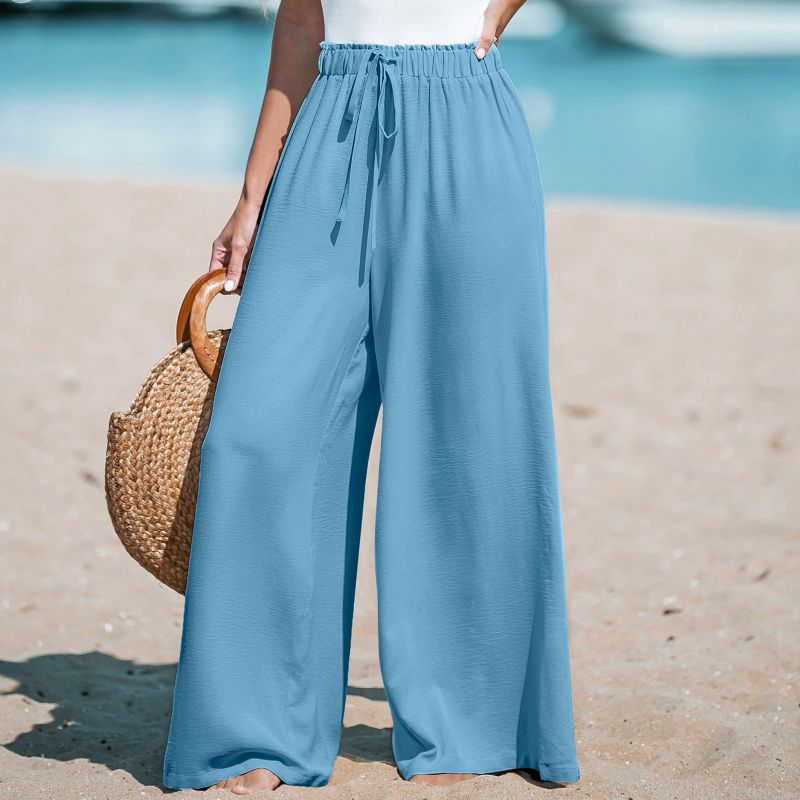 Women's Solid Drawstring Wide Leg Pants - Cupshe-XL-Light Blue