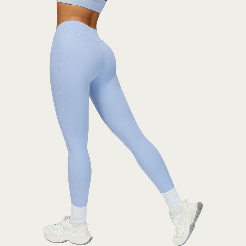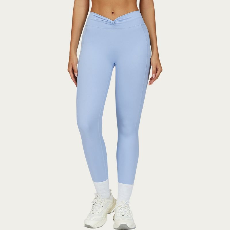 Anna-Kaci Active Women's High Waist Sculpting Leggings with Twist Front Waistband and Smooth Stretch Fabric - Medium, Light Blue