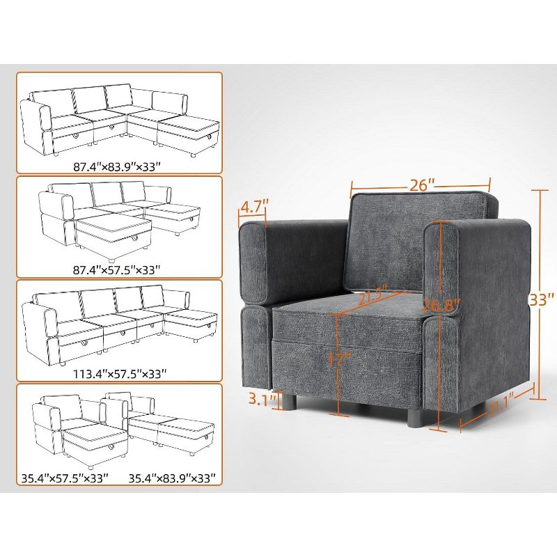 Sectional Sofa, U Shape Sectional Couch, 5 Person Sectional Sofa with Double Chaise Longue for Living Room Furniture, Gray