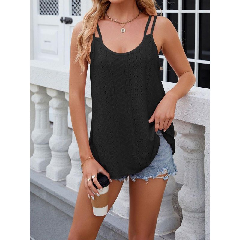 Clearlove Womens Tank Tops Elegant Eyelet Strappy Scoop-Neck Tank Top Sleeveless Solid Daily Summer Tops,Black,L