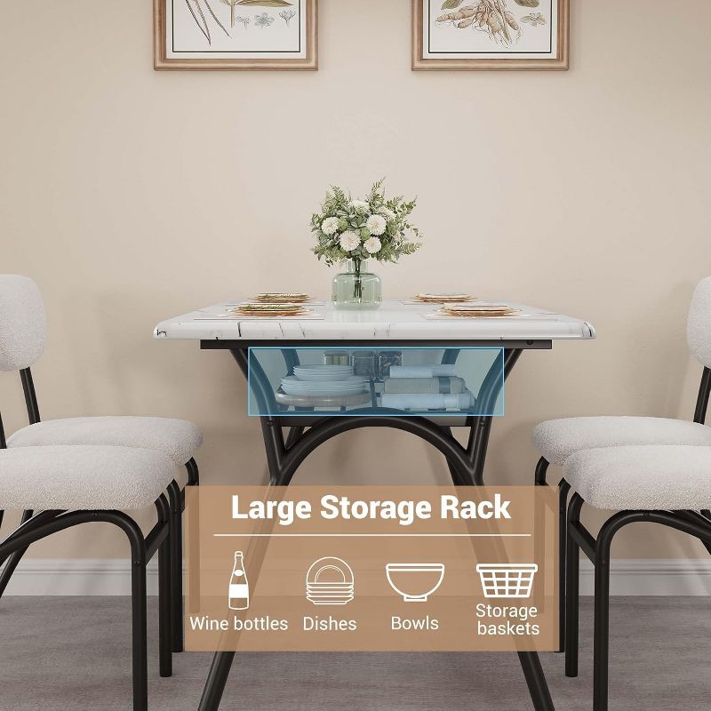 WhizMax Dining Table Set for 4, Rectangular Kitchen Table with 4 Boucle Chairs, Dining Table with Storage, White Table & Beige Chair