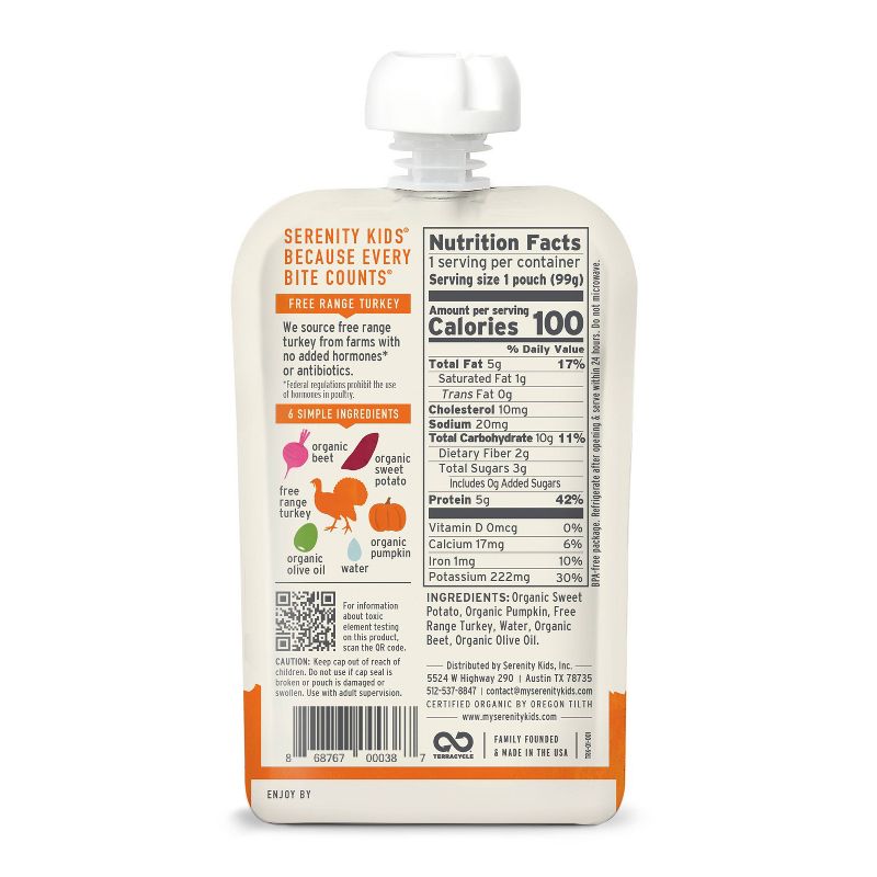 Serenity Kids Free Range Turkey with Organic Sweet Potato, Pumpkin & Beet Baby Food Pouch - 3.5oz