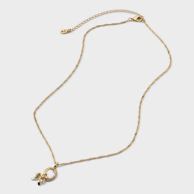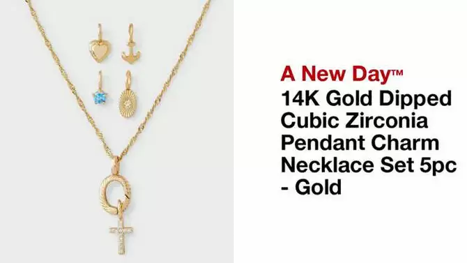 14K Gold Dipped Cubic Zirconia Bow Pendant Charm Necklace Set 5pc - A New Day™ Gold