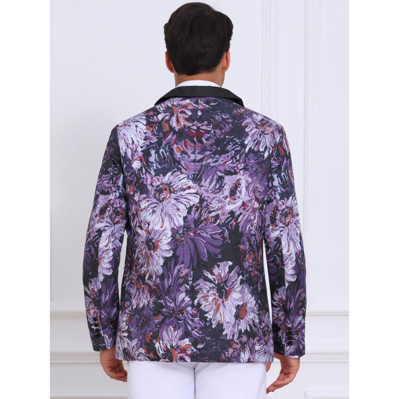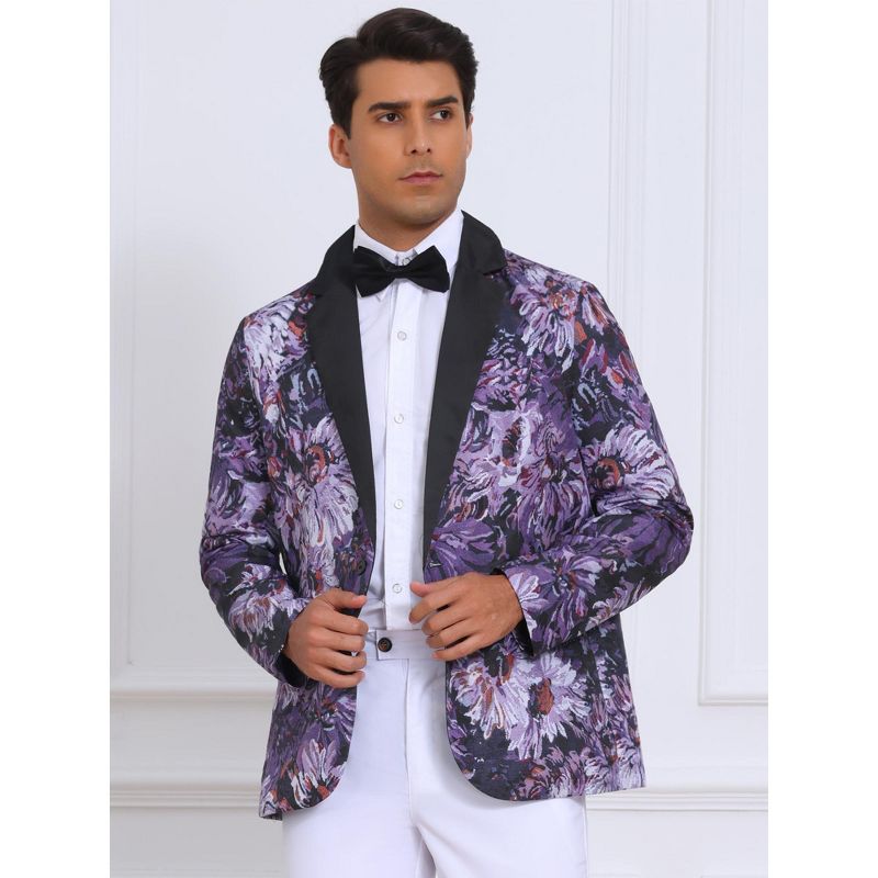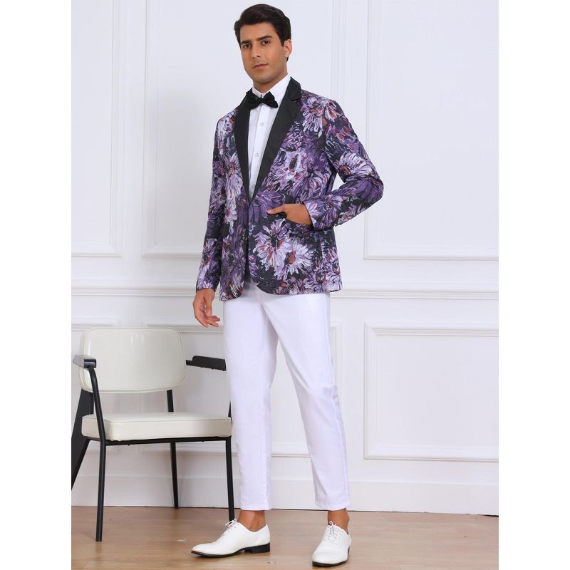 INSPIRE CHIC Men's Single Button Notch Lapel Prom Flower Print Suit Jacket Small Purple Black