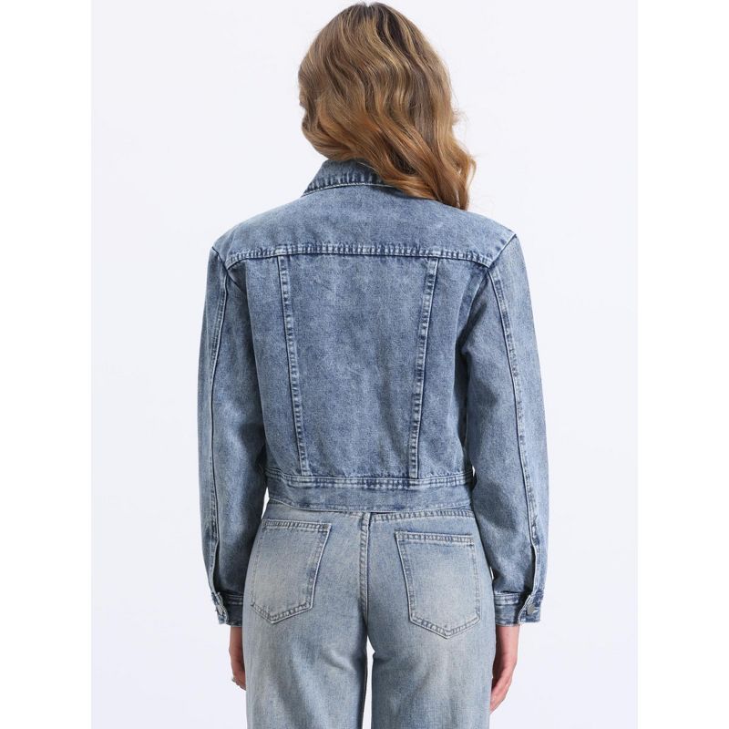 INSPIRE CHIC Women's Zip Up Long Sleeves Pockets Crop Denim Jacket Washed Blue Medium