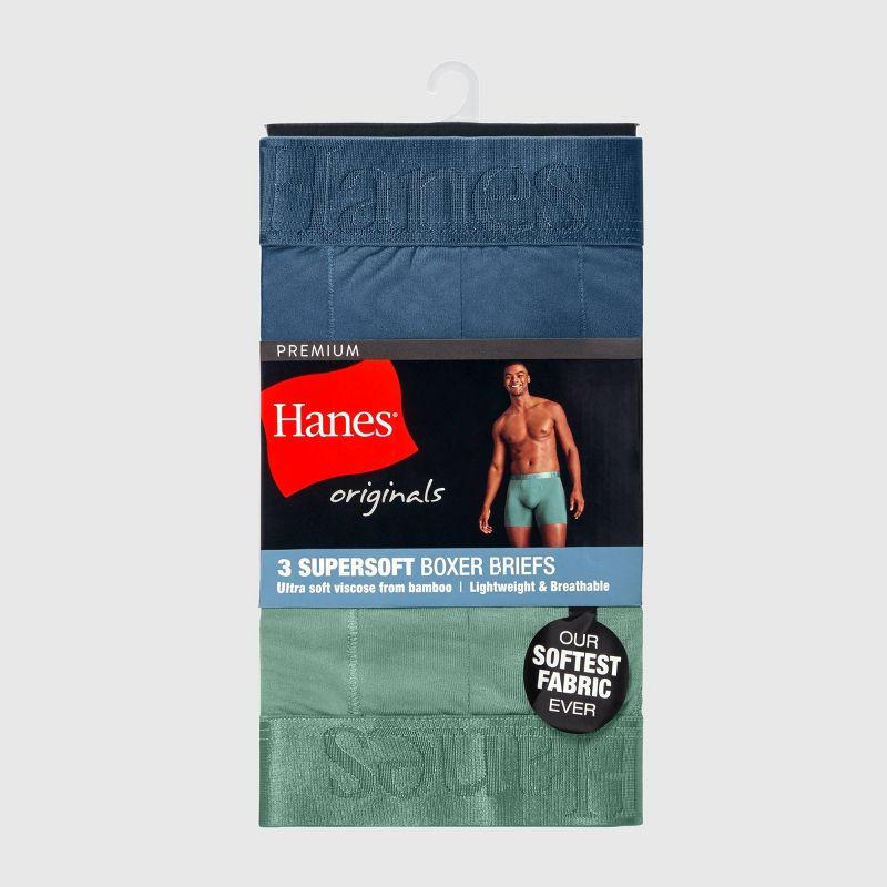 Hanes Originals Premium Men's SuperSoft Boxer Briefs 3pk - Teal Blue/Sage Green/Light Blue M: Tagless, Moisture Wicking