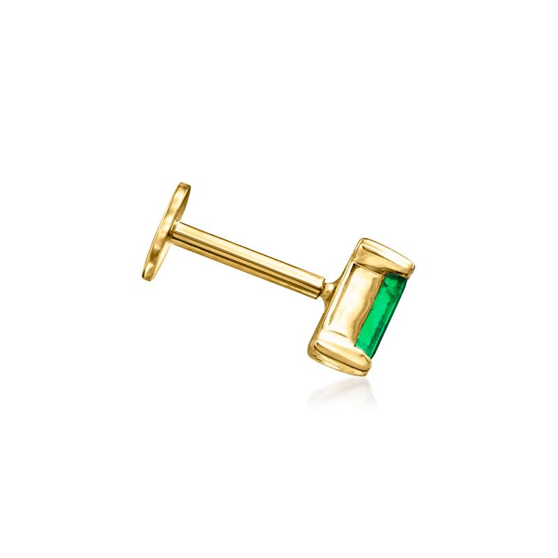 Pure Collection by Ross-Simons Baguette Emerald-Accented Single Flat-Back Stud Earring in 14kt Yellow Gold