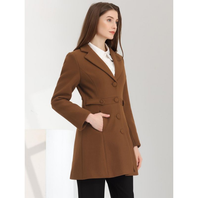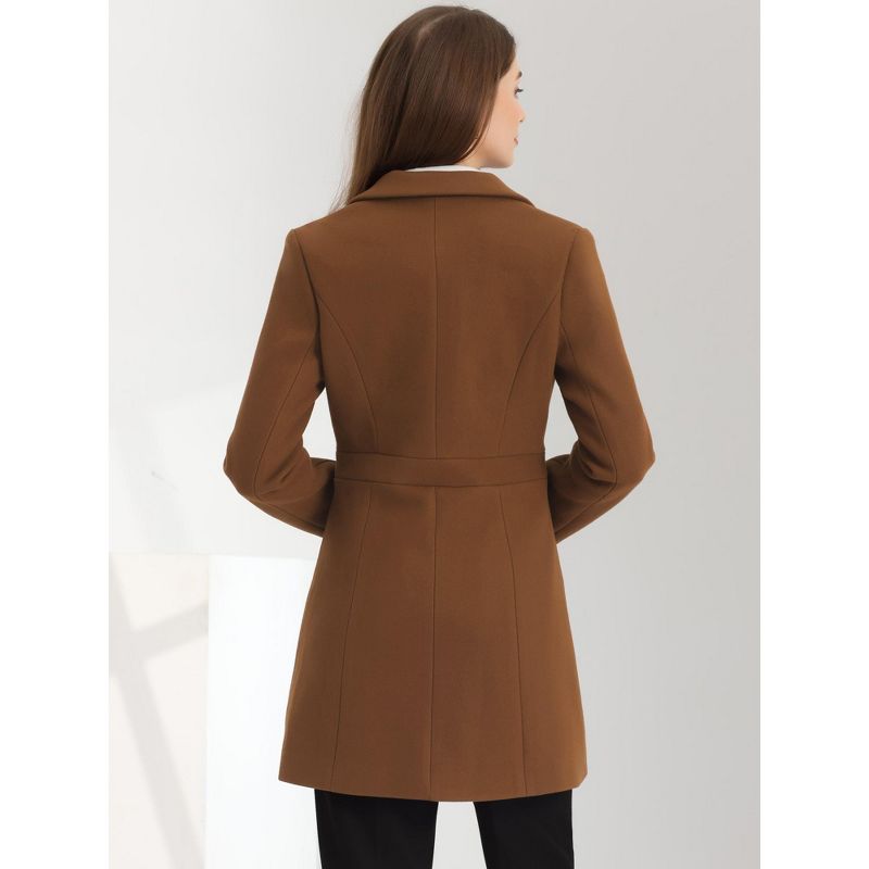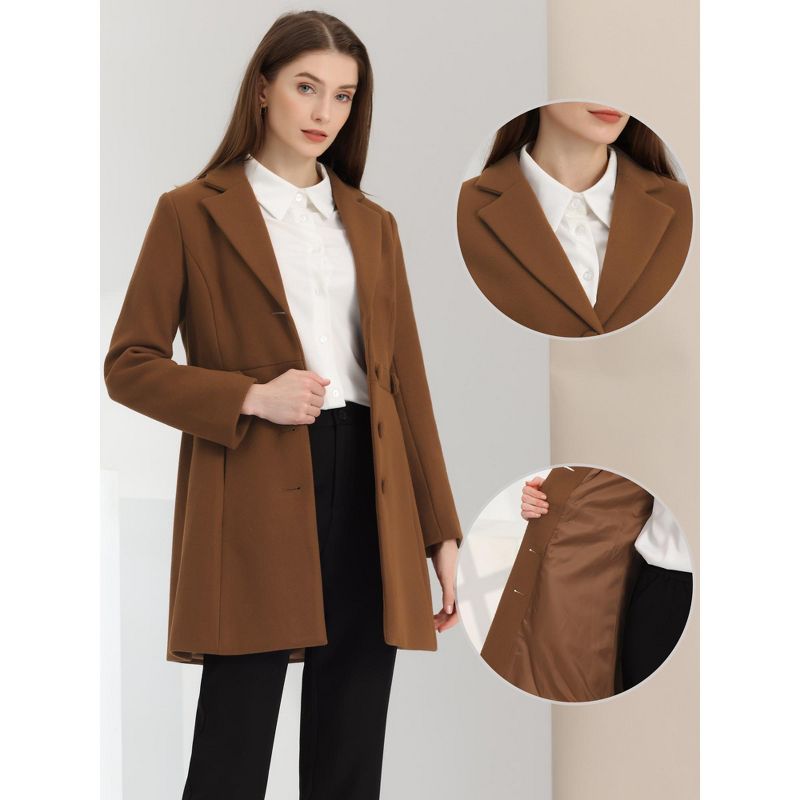 Allegra K Women's Notched Lapel Single Breasted Button Down Outerwear Winter Coats Brown Small