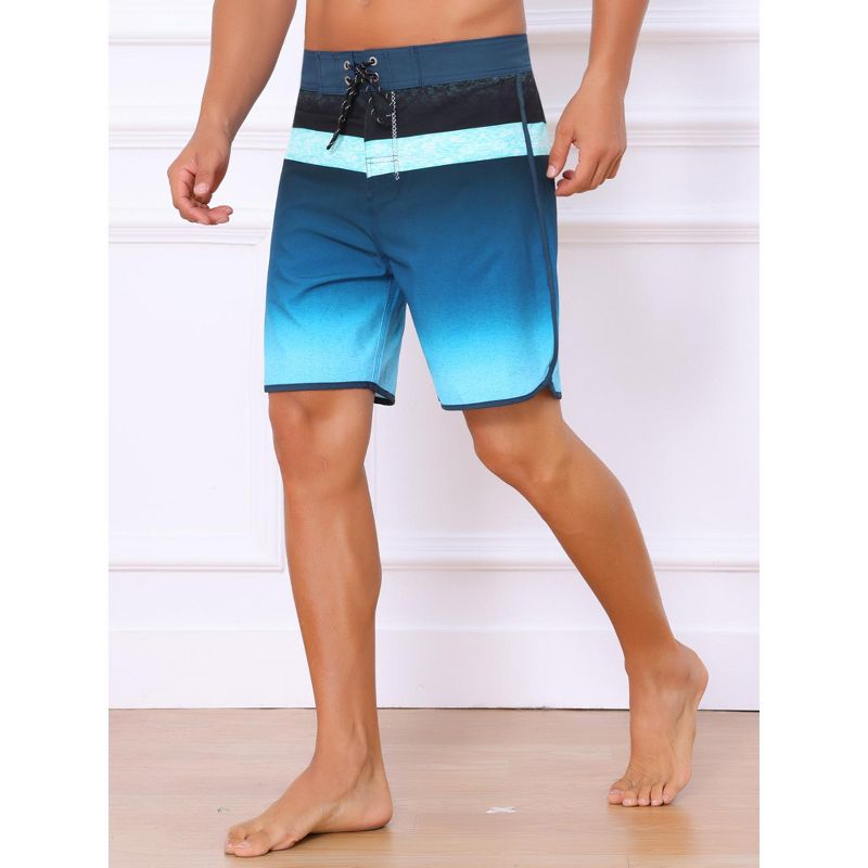 INSPIRE CHIC Men's Drawstring Elastic Waist Color Block Summer Beach Board Shorts 2 Packs 1 Dark Blue 1 Dark Red 38