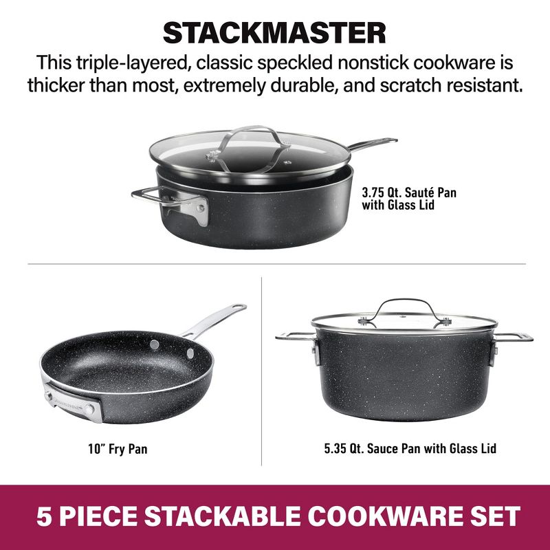 Granitestone Stackable 5 Pc Space Saving Nonstick Cookware Set