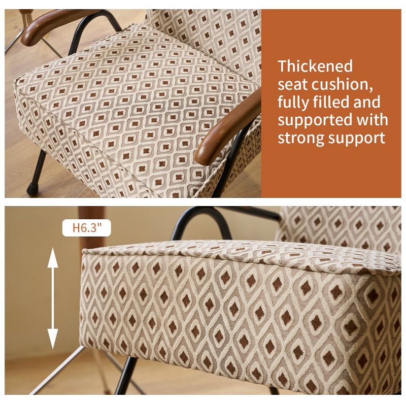 PAGED Modern Metal Frame Accent Chair, Upholstered Arm Chair with High Back, Reading Chair for Bedroom, Living Room Furniture, Cream+Brown