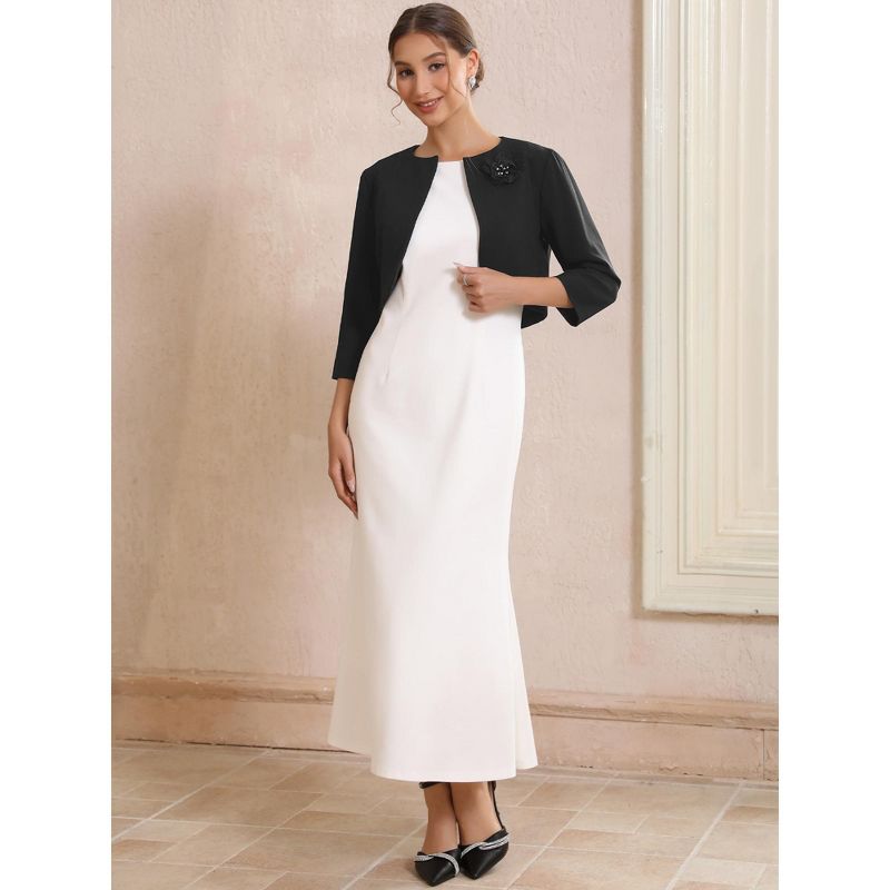 INSPIRE CHIC Women's Crew Neck Formal Bolero 3/4 Sleeves Open Front Cropped Shrugs Medium Black
