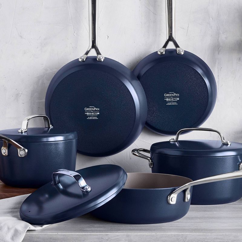 GreenPan GP5 Hard Anodized Healthy Ceramic Nonstick 14pc Cookware Set PFAS Free - Oxford Blue