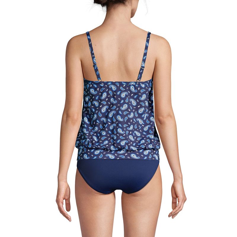 Lands' End Women's Chlorine Resistant Blouson Tankini Swimsuit Top - 2 - Deep Sea Navy Paisley
