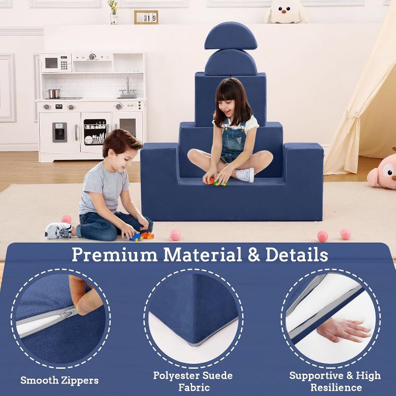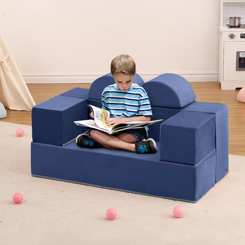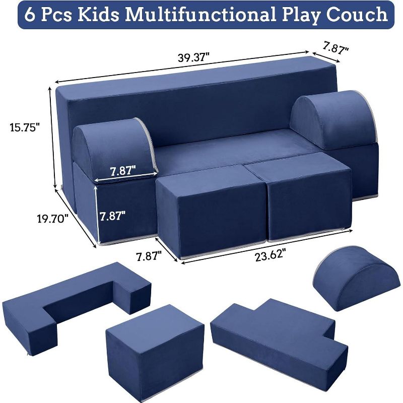 Acekool Kids Modular Play Couch, 6-Piece Foam Toddler Sofa with Removable Microvelvet Cover, Reading Pockets, Blue