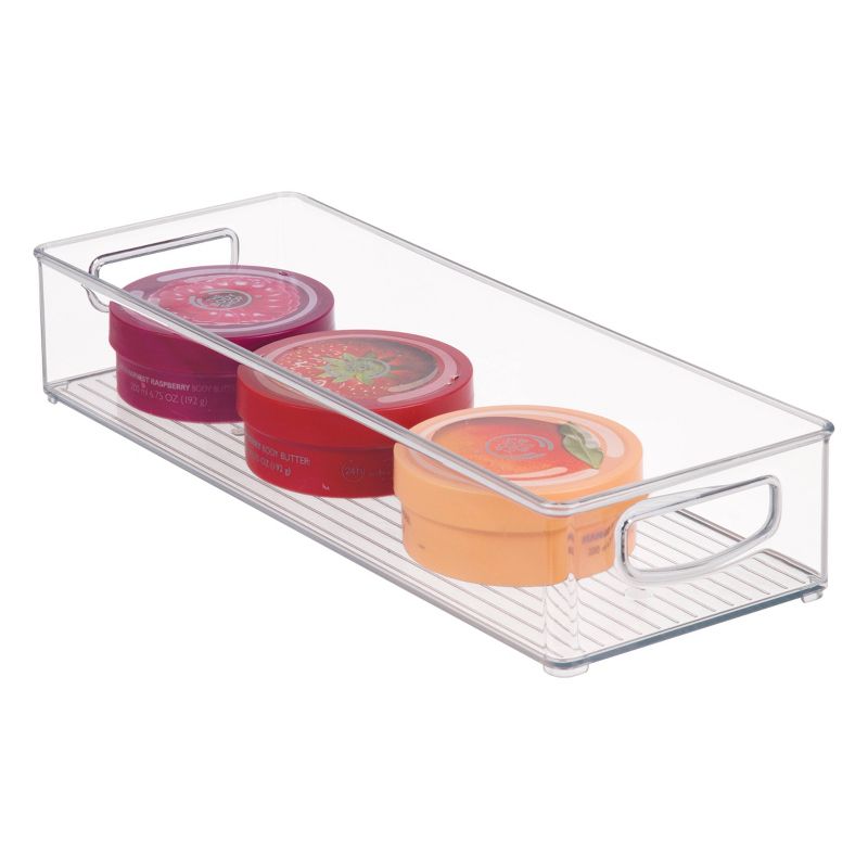 iDESIGN Kitchen Binz Plastic Stackable Organizer Tray with Handle Clear: Kitchen Cabinet Storage, 16"x6"x3", Spot Clean