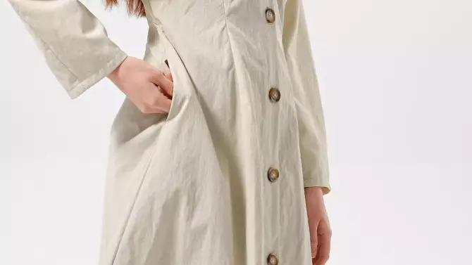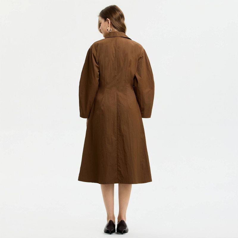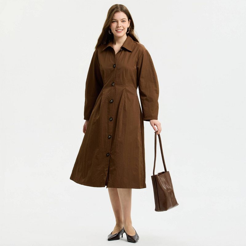 Women's Long Sleeve Button-Front Pleated Midi Dress - A New Day™ Brown L