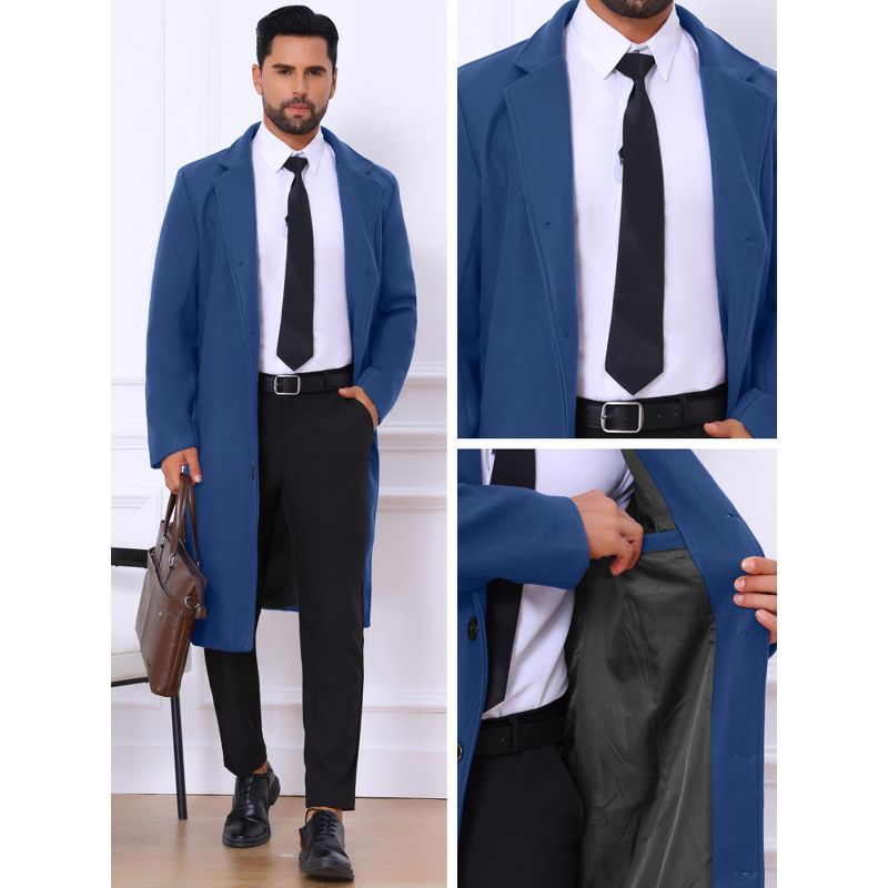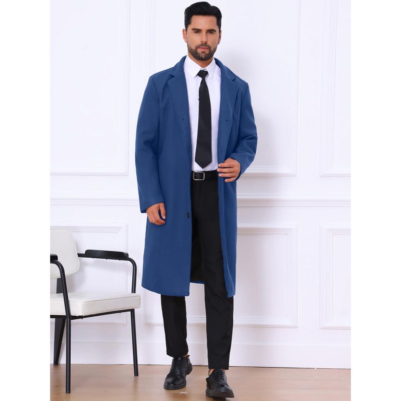 Lars Amadeus Men's Single Breasted Notch Lapel Formal Winter Long Overcoat Medium Dark Blue