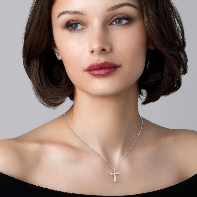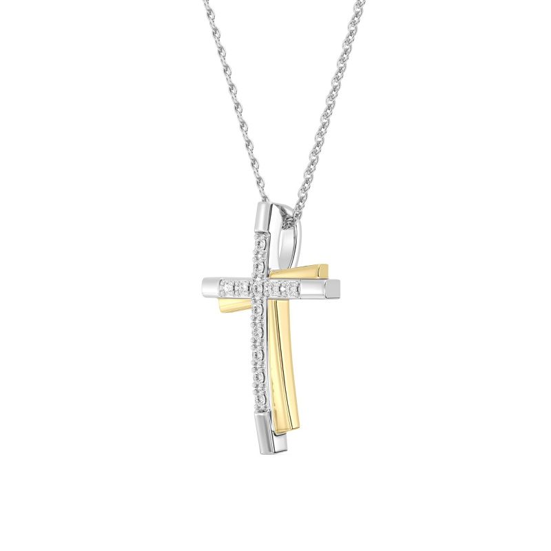 Itsy Bitsy by Gilded 1/10 ct t.w. Lab Grown Diamond Cross Pendant Necklace in 14KT Gold Plated Silver, 18" Cable Chain