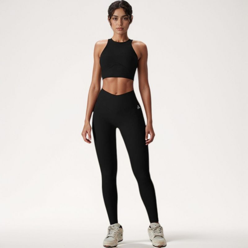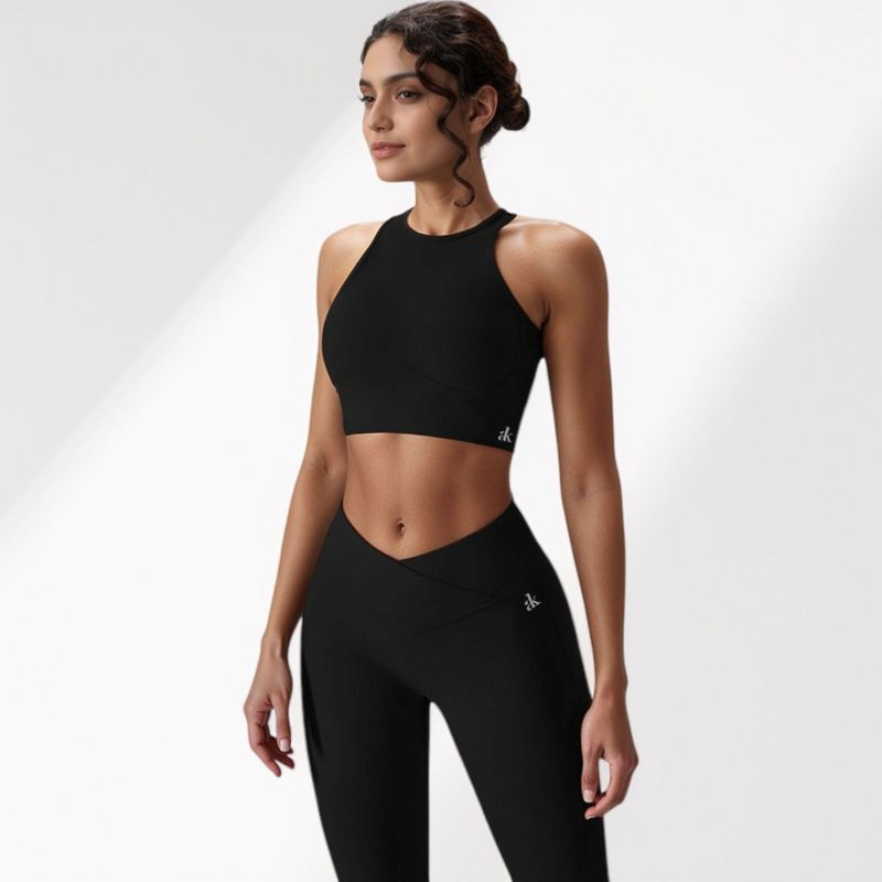Anna-Kaci Active Women's High Neck Racerback Sports Crop Top with Seamless Compression Fit - Large, Black