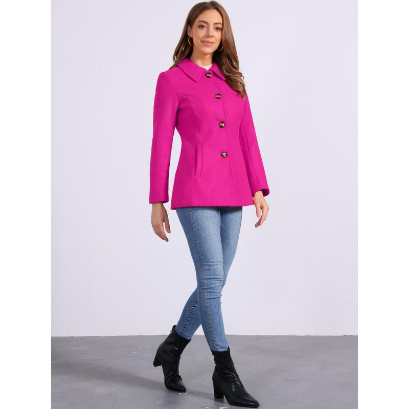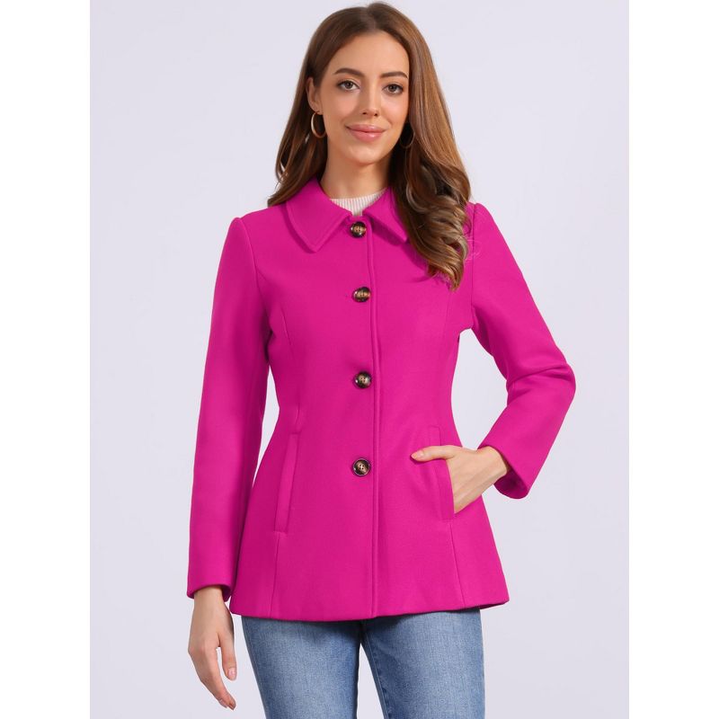 INSPIRE CHIC Women's Work Office Winter Overcoat Single Breasted Point Collar Pea Coat Medium Hot Pink