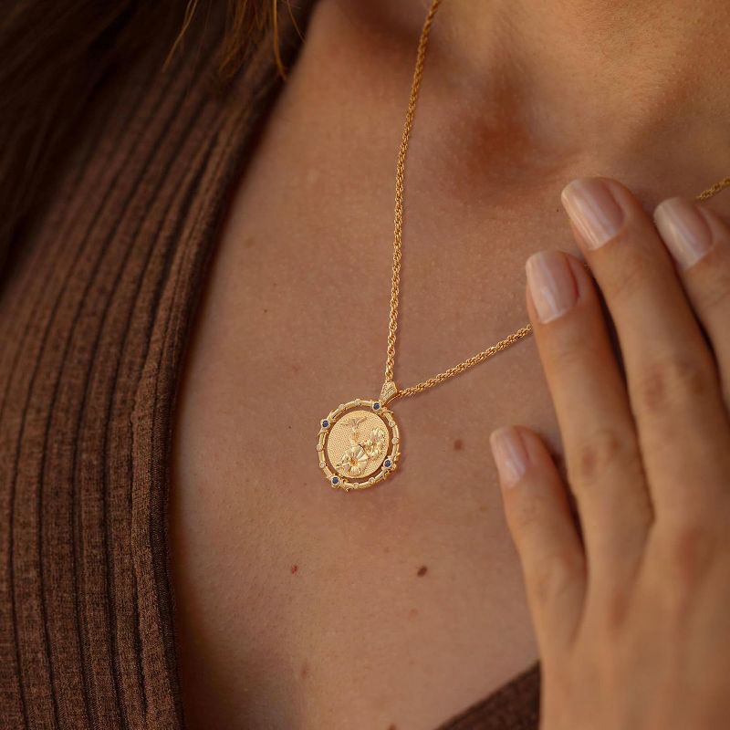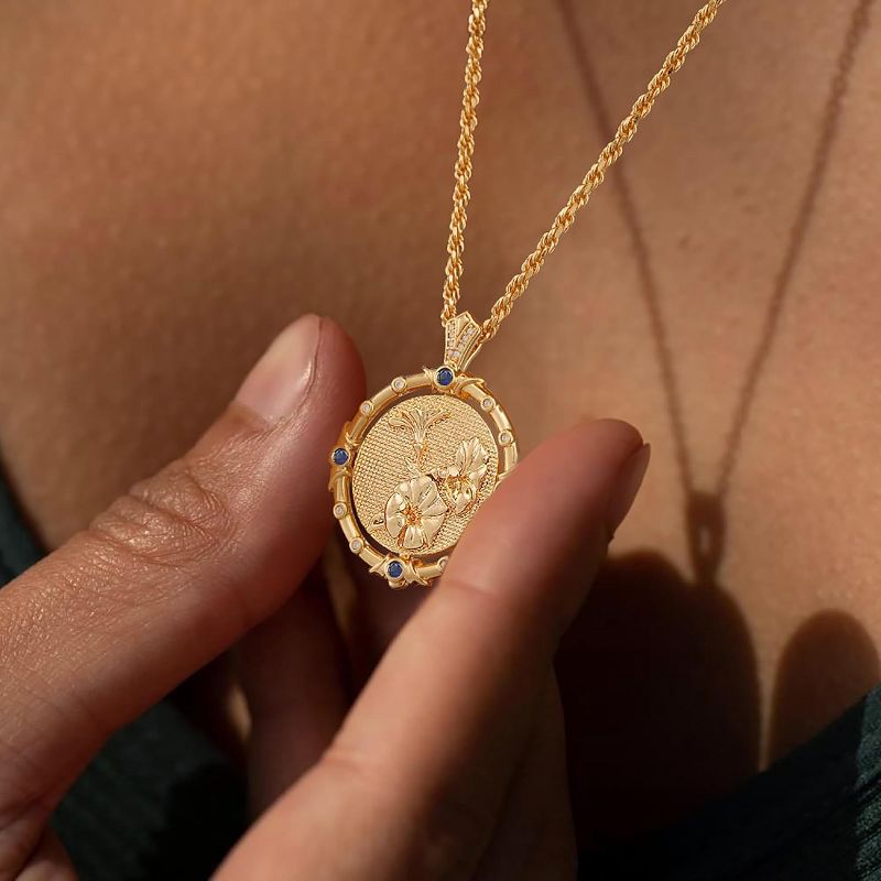 Birth Flower Necklaces for Women 14K Gold Plated Birth Flower with Birthstone Chunky Reversible Rotatable Disc Pendant Necklaces Jewelry