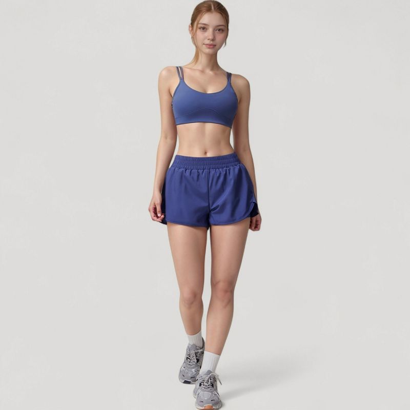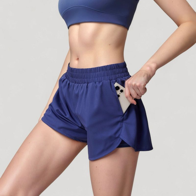 Anna-Kaci Active Women's High Waist Running Shorts with Built-In Liner and Side Pockets for Storage - X Large, Blue
