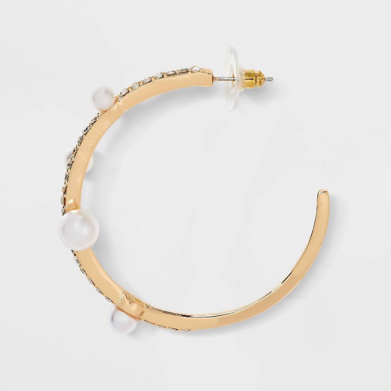 Pave Pearl Hoop Earrings - A New Day™ Gold