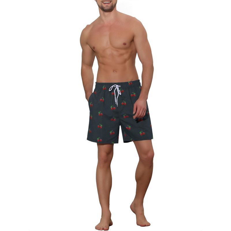 Lars Amadeus Men's Fruit-printed Drawstring Lightweight Holiday Board Shorts 2 Pack Red 30