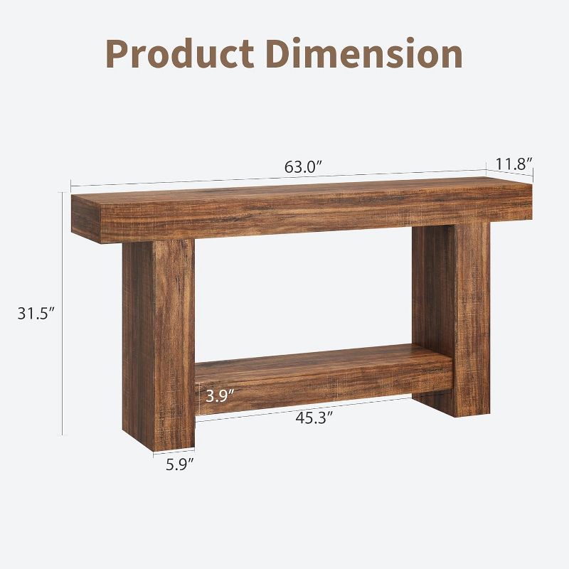 Farmhouse 2-Tier Console Table with Storage, 63" Rustic Wood Sofa & Entryway Table for Living Room & Hallway, Flame Pattern