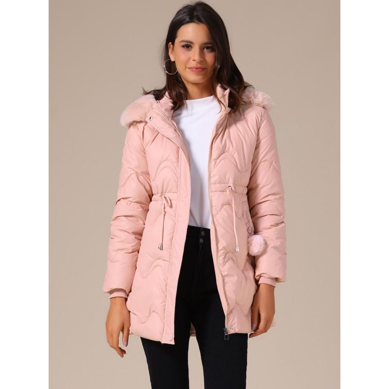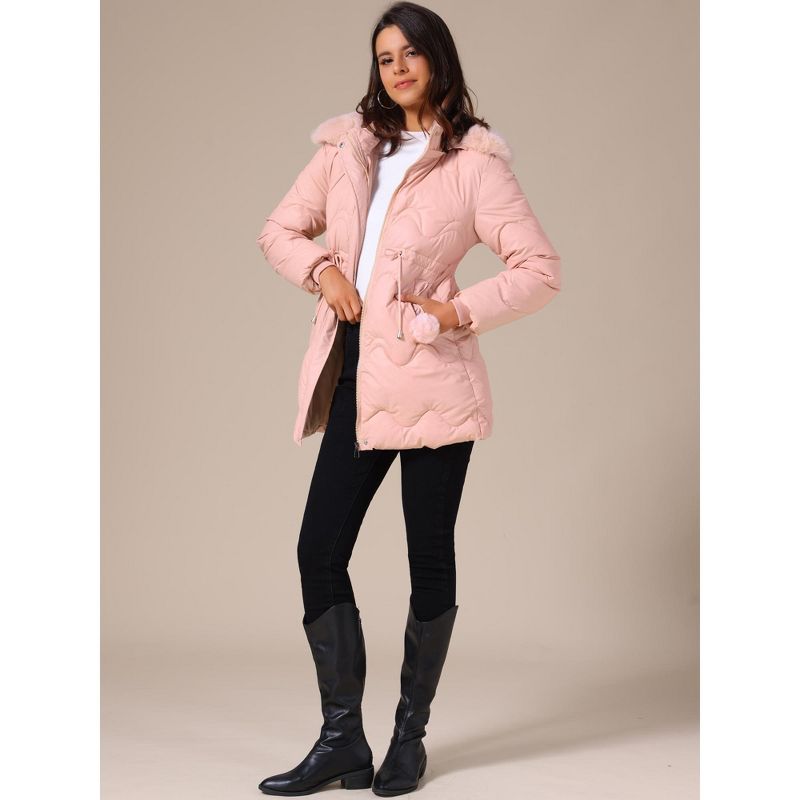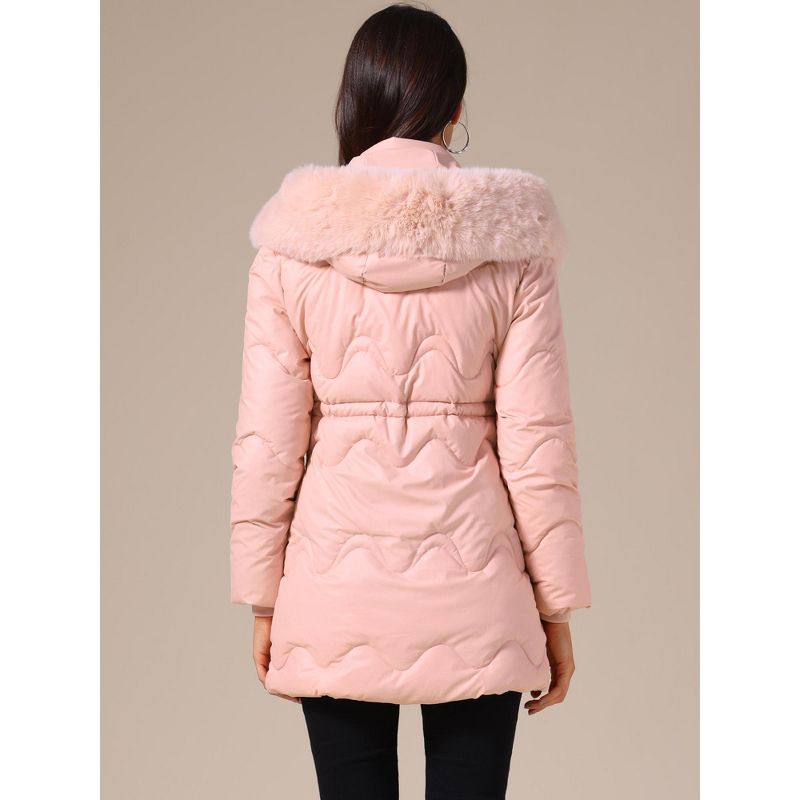 INSPIRE CHIC Women's Winter Thicken Puffer Faux Fur Removable Hood Warm Parka Jacket Medium Pink