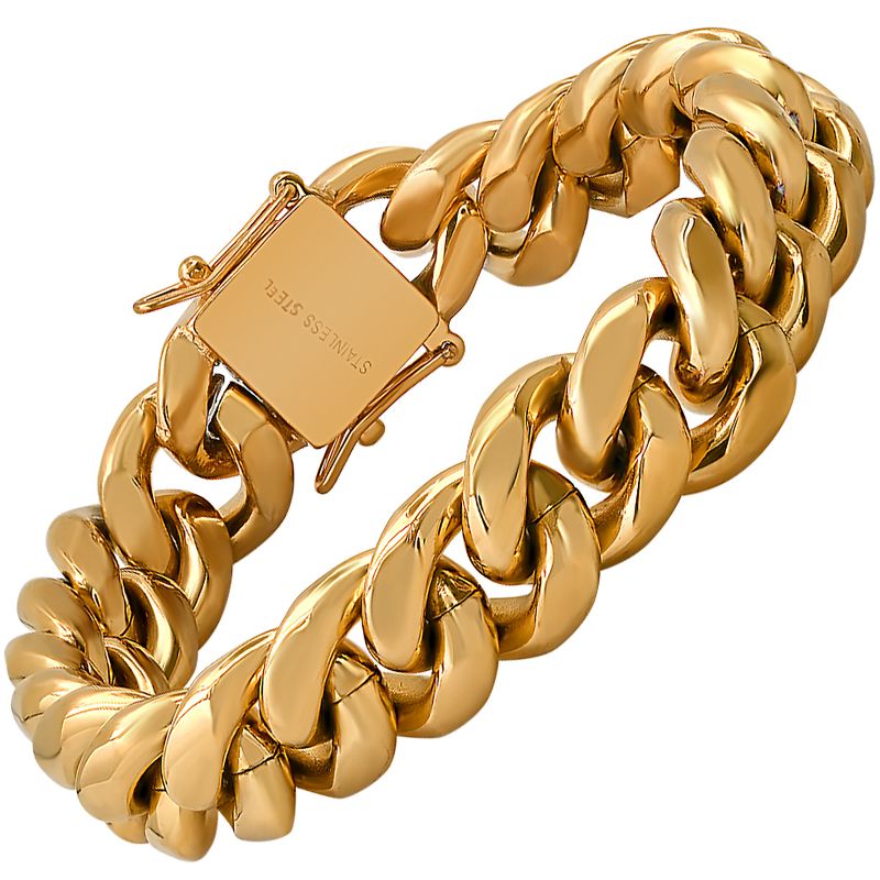 Steeltime Men's 18k gold plated stainless steel heavy cuban link chain bracelet