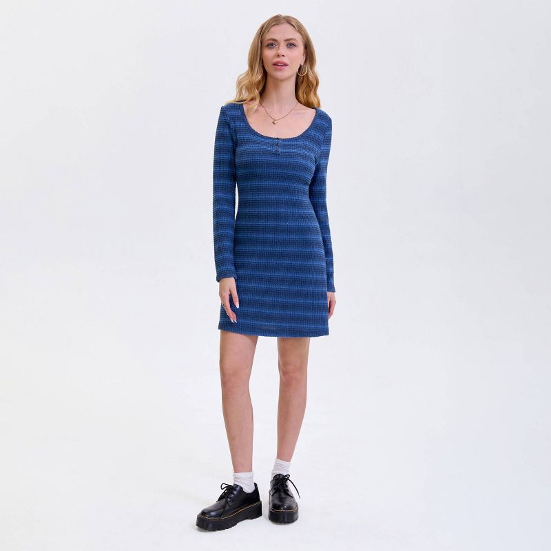 Women's Long Sleeve Mini Dress - Wild Fable™ Royal Blue Striped M