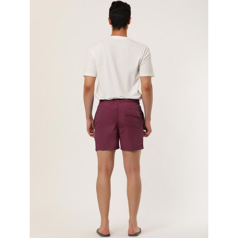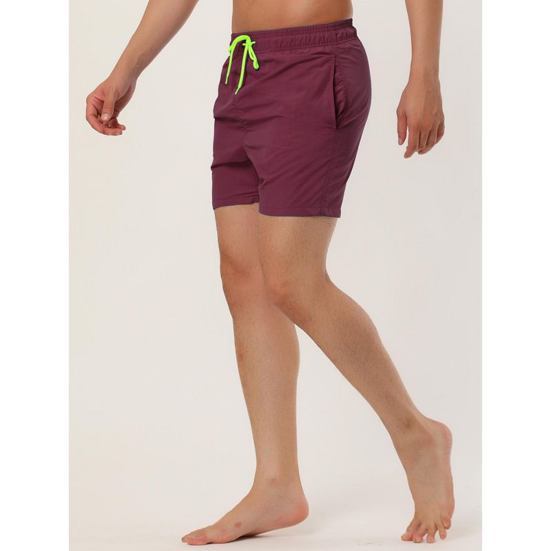 Lars Amadeus Men's Summer Solid Mesh Lining Drawstring Waist Beach Pool Swim Shorts 2 Pack Burgundy/Orange 32