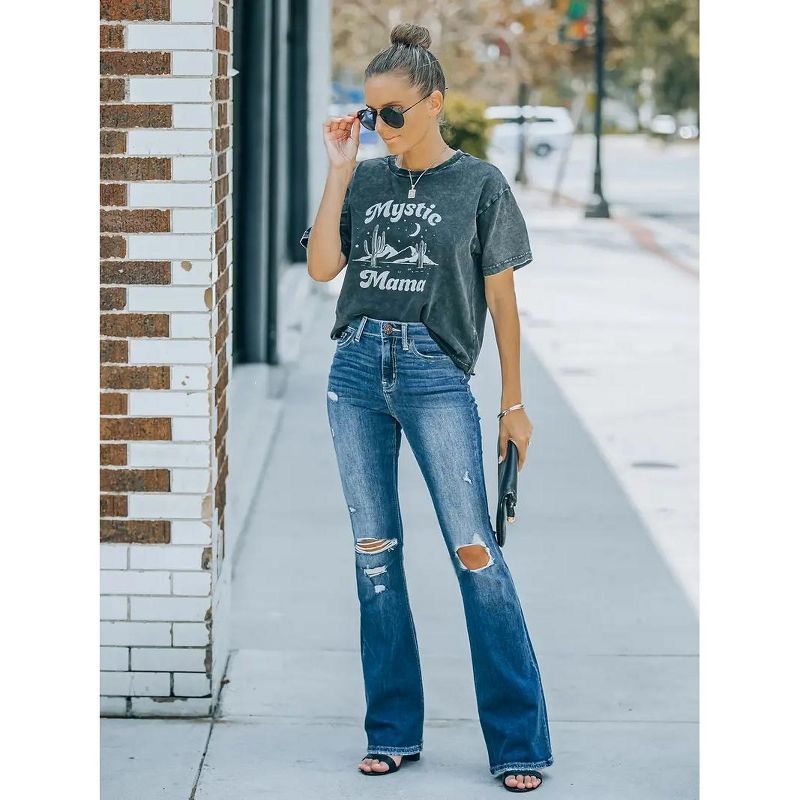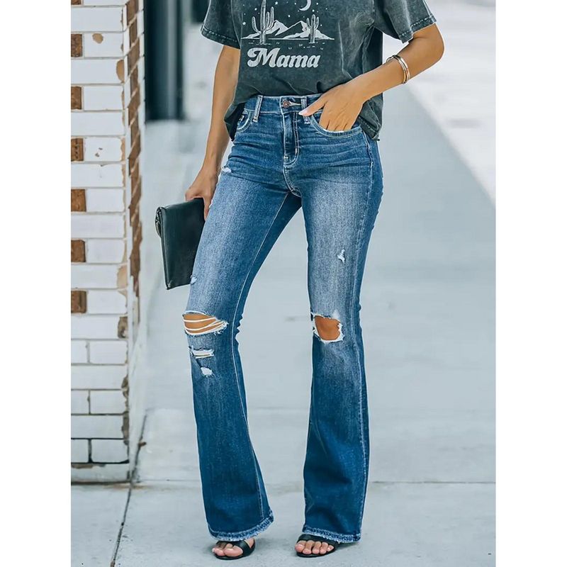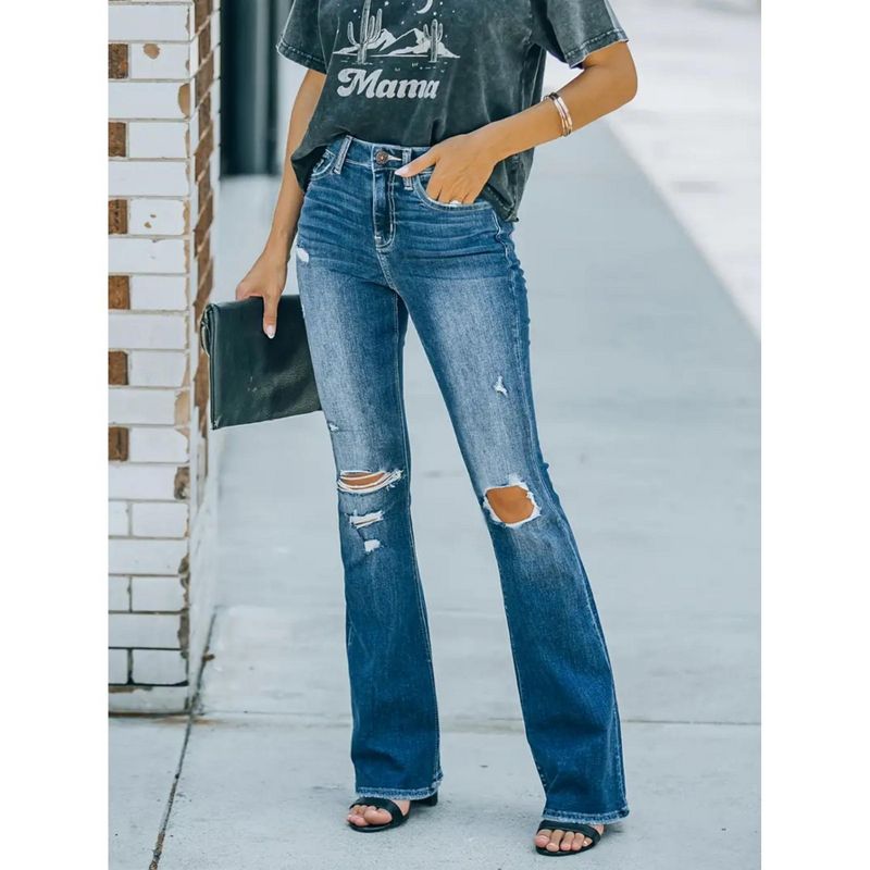 Jojoka Women's Flare Bell Bottom Jeans High Waisted Wide Leg Bootcut Jeans Stretchy Denim Pants Blue XS