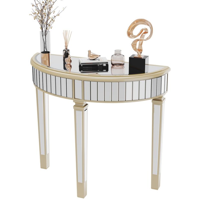 Artloge 35.4x31.6 in Silver Mirrored Console Table Half-moon Sofa Accent Table Living Room Furniture