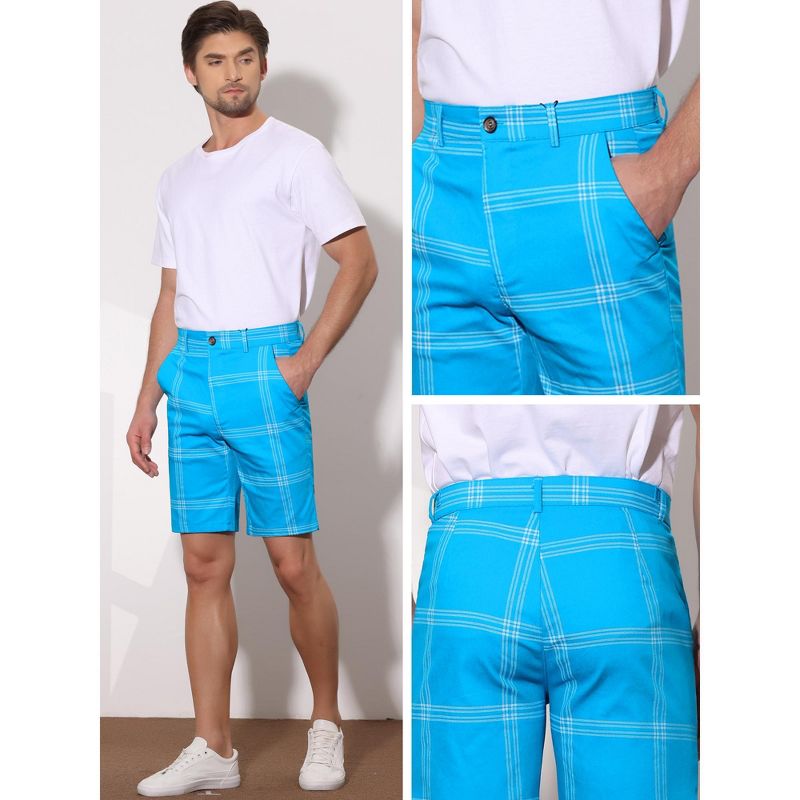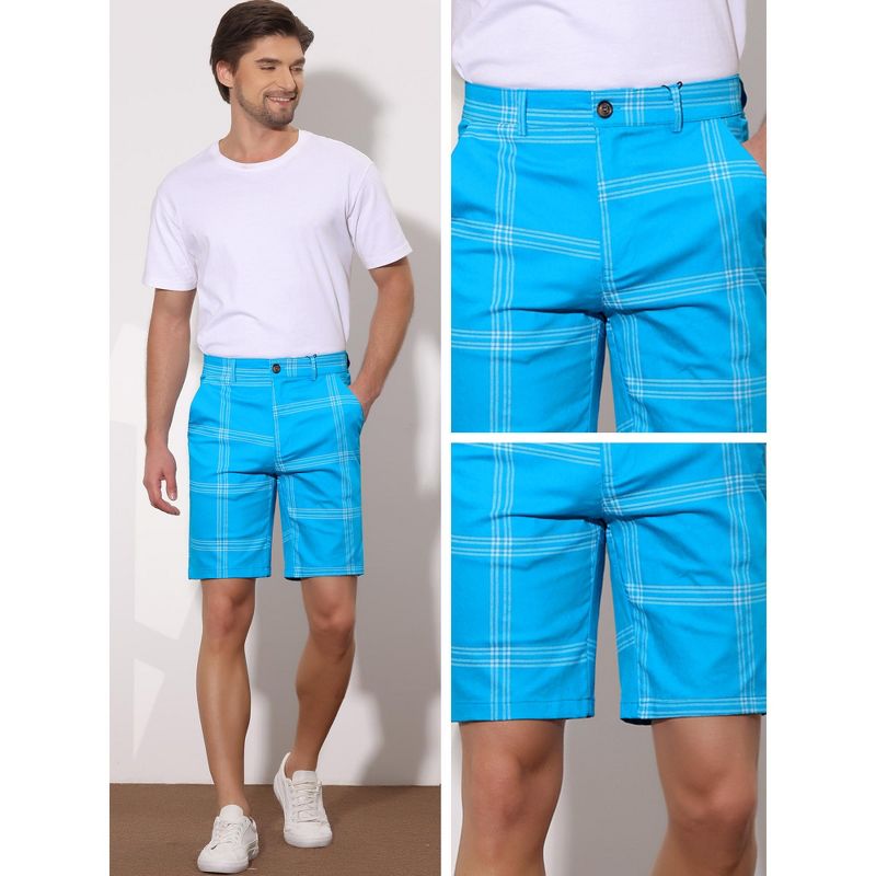Lars Amadeus Men's Summer Flat Front Checked Chino Shorts 2 Packs Blue 34