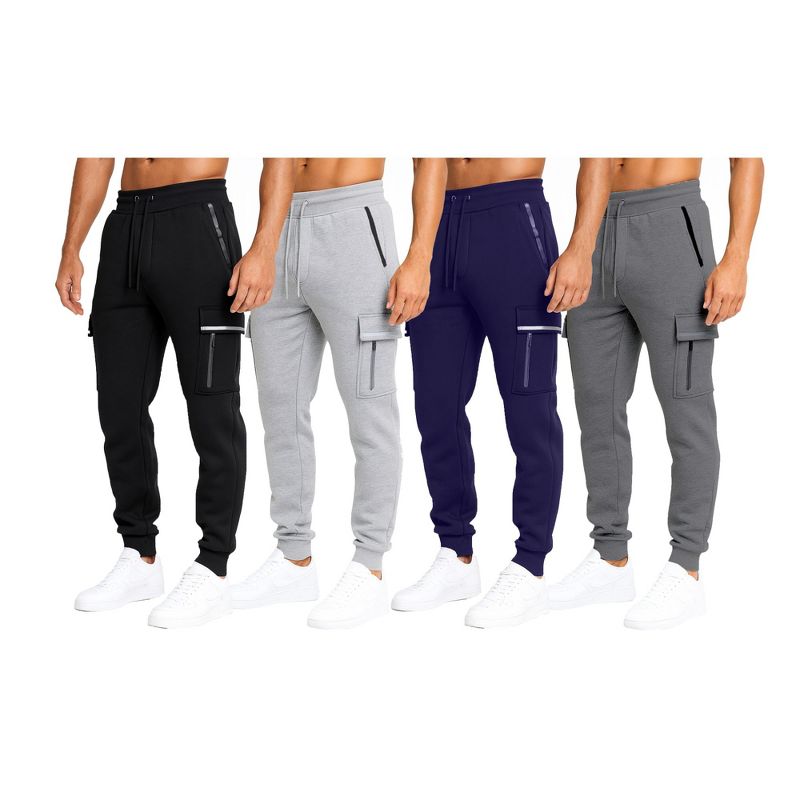 Blue Ice Men's Modern Fit Heavyweight Tech Fleece Cargo Jogger Pants with Zipper Pockets-2 Pack