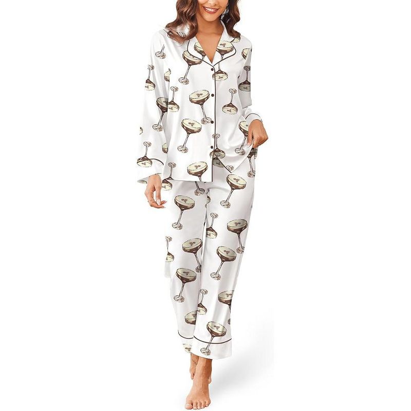 SHESHOW Pajamas for Women Set Long Sleeve Button Down Sleepwear 2 Piece Nightwear Women Pjs Sets 03-martini Drinks Pink M