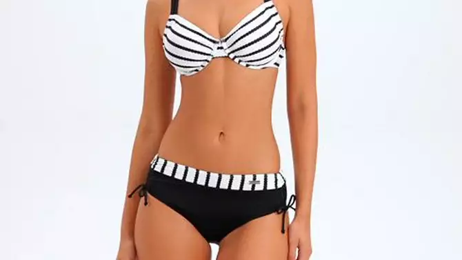 Women's Striped Underwire Bikini Swimsuit Top Bra Sizing - LASCANA - Black & White Stripe 40B