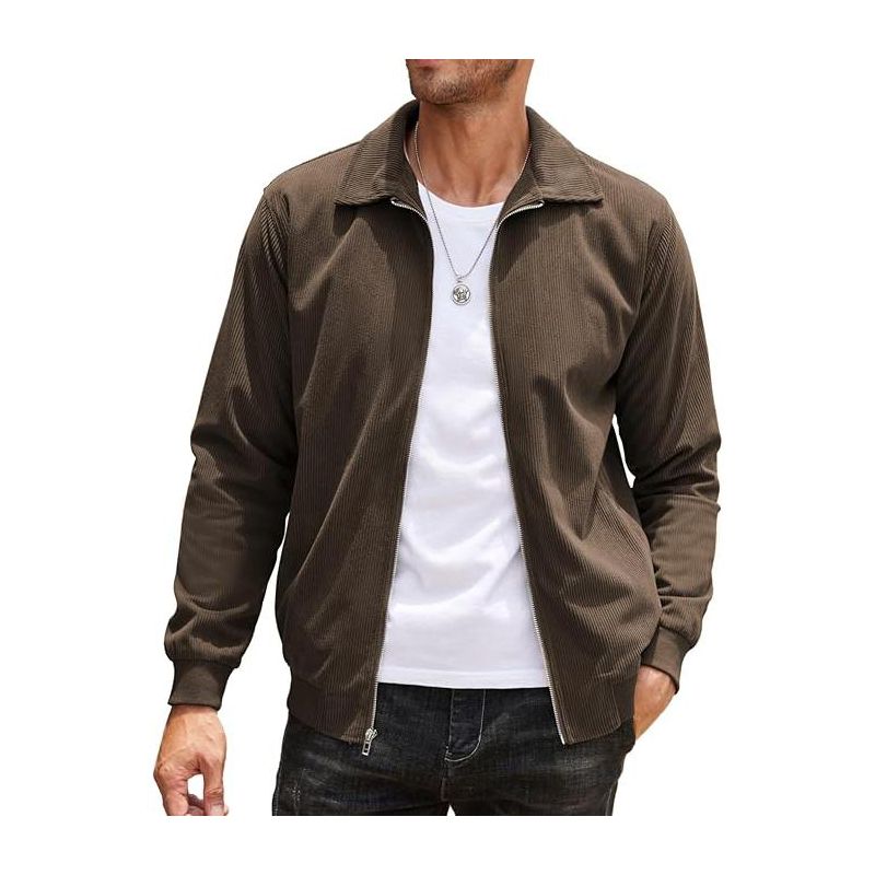 COOFANDY Men's Casual Corduroy Jacket Lightweight Zip Up Vintage Jacket Collared Bomber Jacket Light Brown S