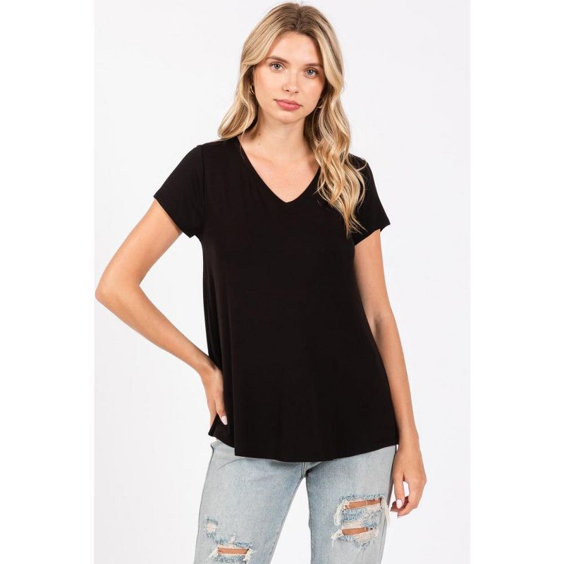 PinkBlush Black Basic V-Neck Short Sleeve Maternity Top Black Small