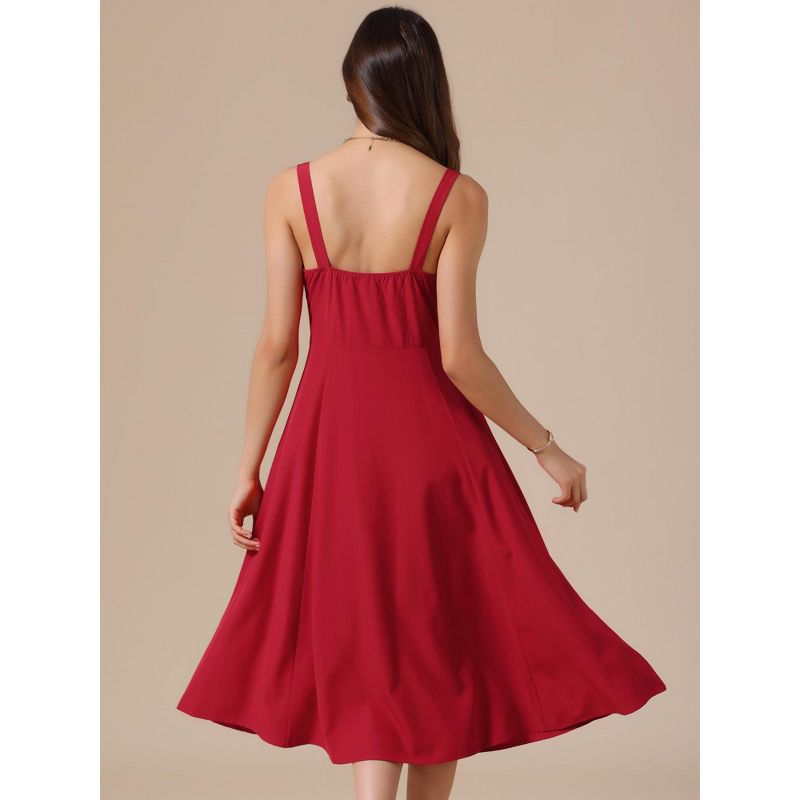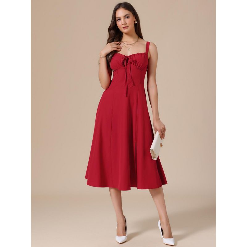 INSPIRE CHIC Women's Spaghetti Strap Sleeveless Sweetheart Neck Side Slit A-line Mid Dress Large Red