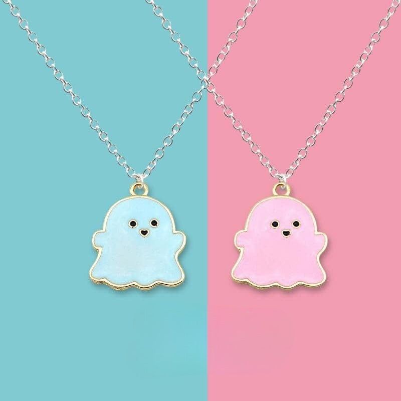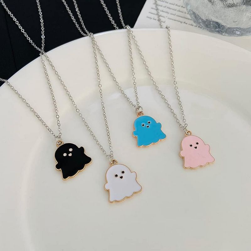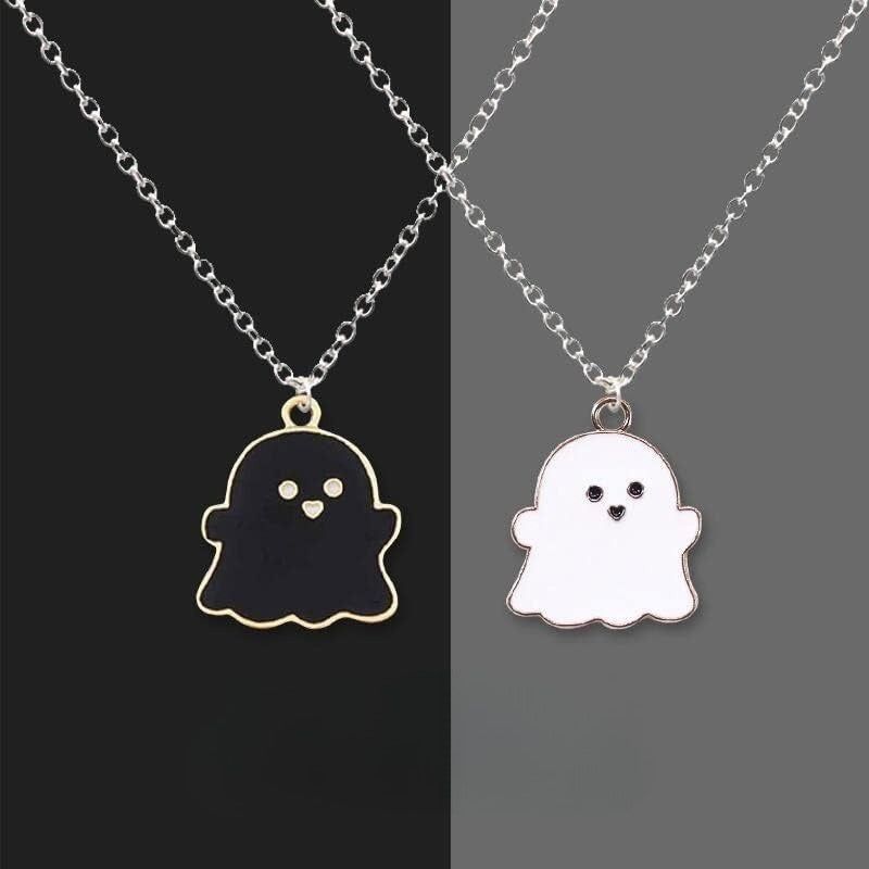 Summit Adventure 4-Piece Ghost Enamel Pendant Necklace Set, Couple Best Friend Halloween Jewelry Gift